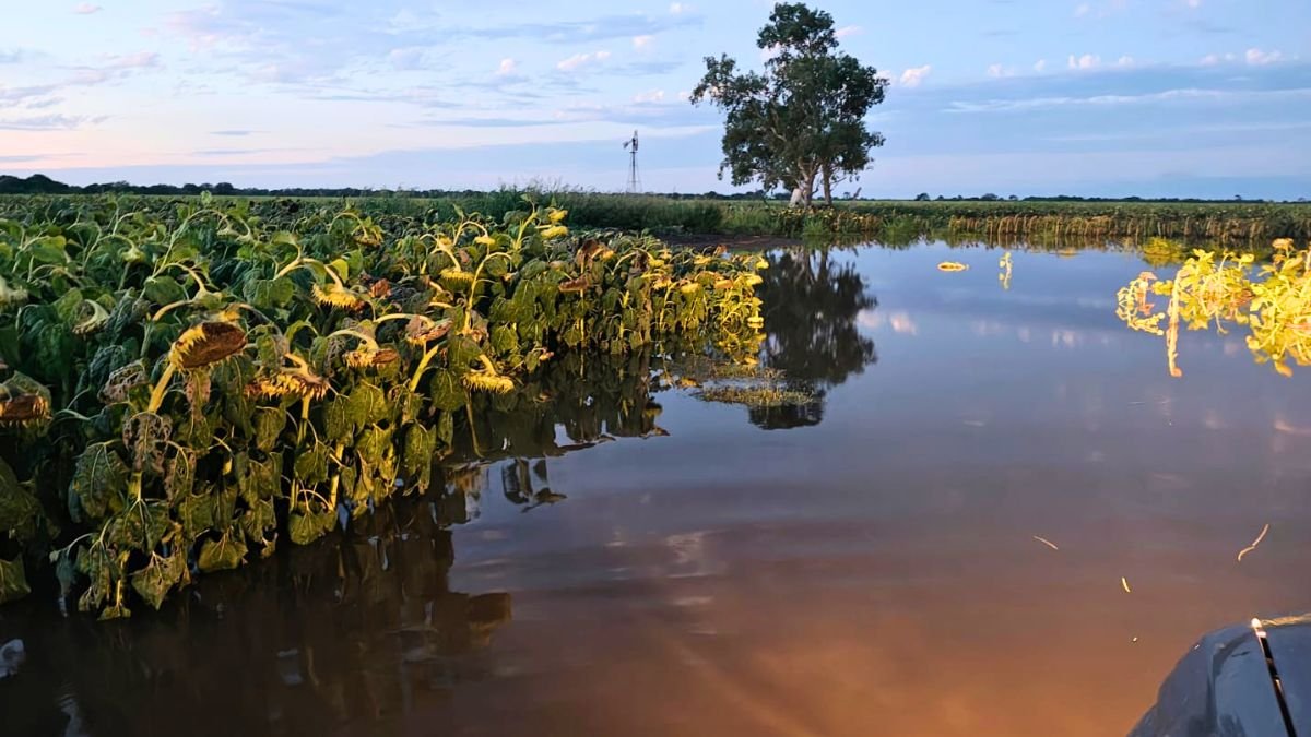 Lotes de girasol prontos para ser cosechados se inundaron, poniendo en riesgo la producción.