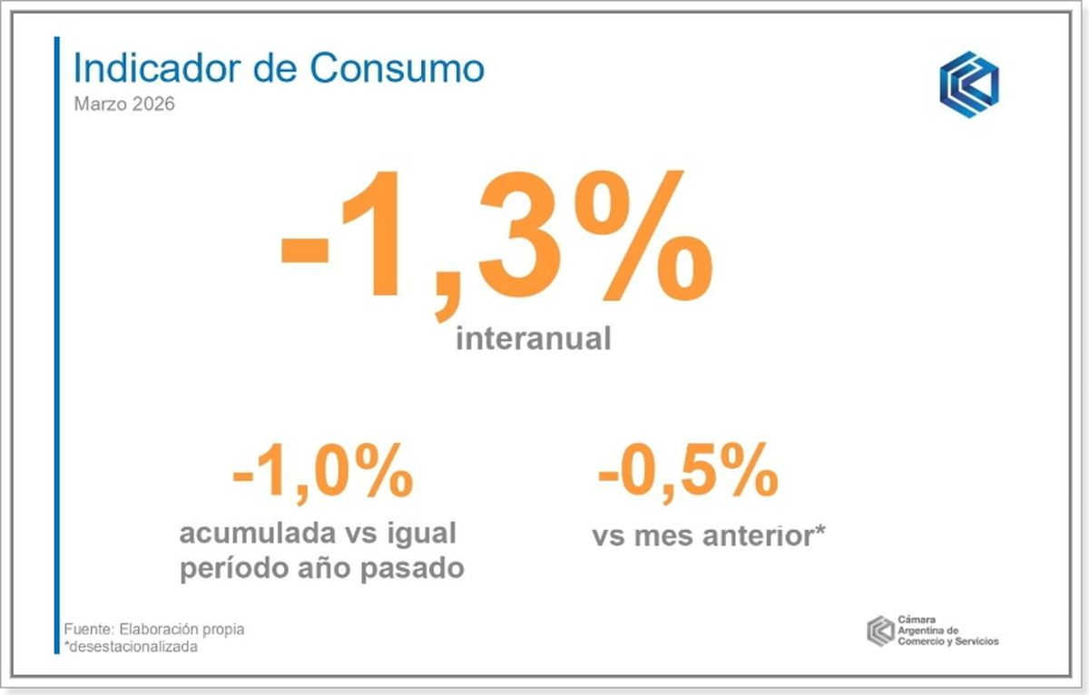 El consumo de los hogares volvió a mostrar señales de debilidad en el arranque de 2026. Según el Indicador de Consumo (IC) de la Cámara Argentina de Comercio y Servicios (CAC), el gasto en bienes y servicios finales cayó 1% en el primer trimestre, consolidando un escenario de estancamiento tras la mejora observada en 2025.