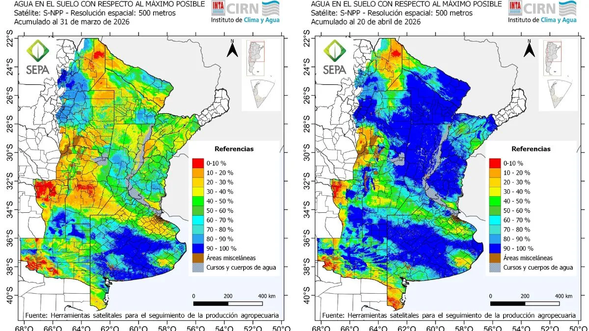 El panorama actual combina extremos en distancias relativamente cortas. Para el organismo, “el patrón actual combina amplias áreas con buena a muy buena disponibilidad hídrica y focos persistentes de déficit”, lo que configura “un escenario de alta variabilidad espacial que requiere un seguimiento cercano en las próximas semanas”.