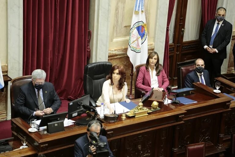 Cuando estaba exponiendo el jefe del bloque de la Unión Cívica Radical (UCR), Luis Naidenoff, la Cristina Kirchner tomó sus pertenencias y se retiró del Congreso, por lo que el momento de la votación fue coordinado por la presidenta provisional de la Cámara alta, Claudia Ledesma Abdala.