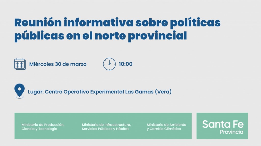 El gobierno provincial realizará este miércoles, desde las 10 horas, en el Centro Operativo Experimental Las Gamas, departamento Vera, una jornada informativa sobre las acciones y políticas públicas llevadas a cabo en el norte santafesino.