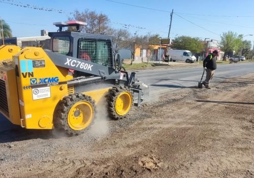 A las intervenciones sobre banquinas y deformaciones en la travesía urbana de Nelson se suman tareas de corte de pasto con un frente desde Videla hacia Llambi Campbell durante este miércoles.