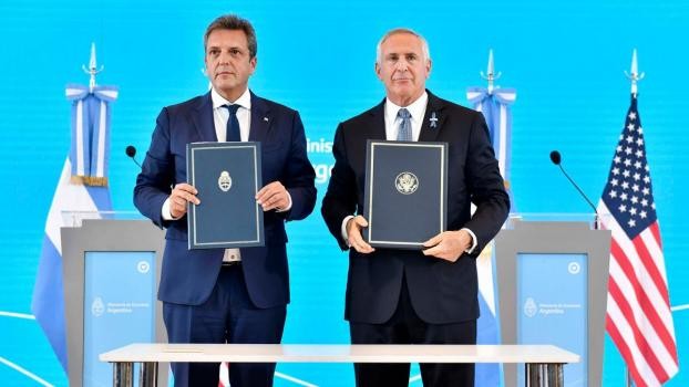 El ministro de Economía, Sergio Massa, y el embajador de Estados Unidos en la Argentina, Marc Stanley, firmaron este lunes un Acuerdo en Materia  Tributaria (TIEA) que prevé intercambiar información financiera de cuentas individuales y beneficiarios de sociedades de ambos países.