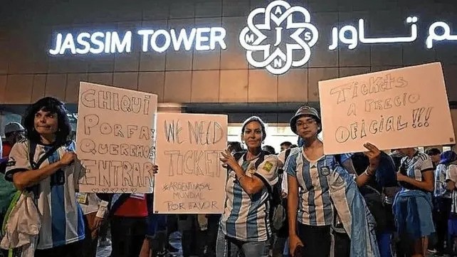 Los hinchas de autoconvocaron en el lugar desde las 19.30 hora local (13.30 de Argentina) para que la dirigencia resuelva la situación de más de 1.000 argentinos que no disponen localidades para asistir a la gran definición del domingo con Francia en el Estadio Lusail, cuya capacidad es de 88.966.