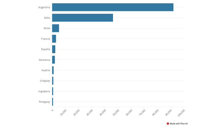 Junto a otras cifras esperadas, desde la mirada contemporánea, como la escasa cantidad de personas mayores de 60 años (3069) o la distribución de la religión (95.7% católicos), se destaca la resonante presencia inmigrante.