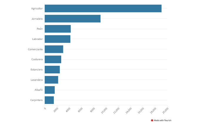 Otra categoría de interés para la comparación actual es la de las profesiones más comunes, con una lógica presencia de los agricultores como grupo de más peso.