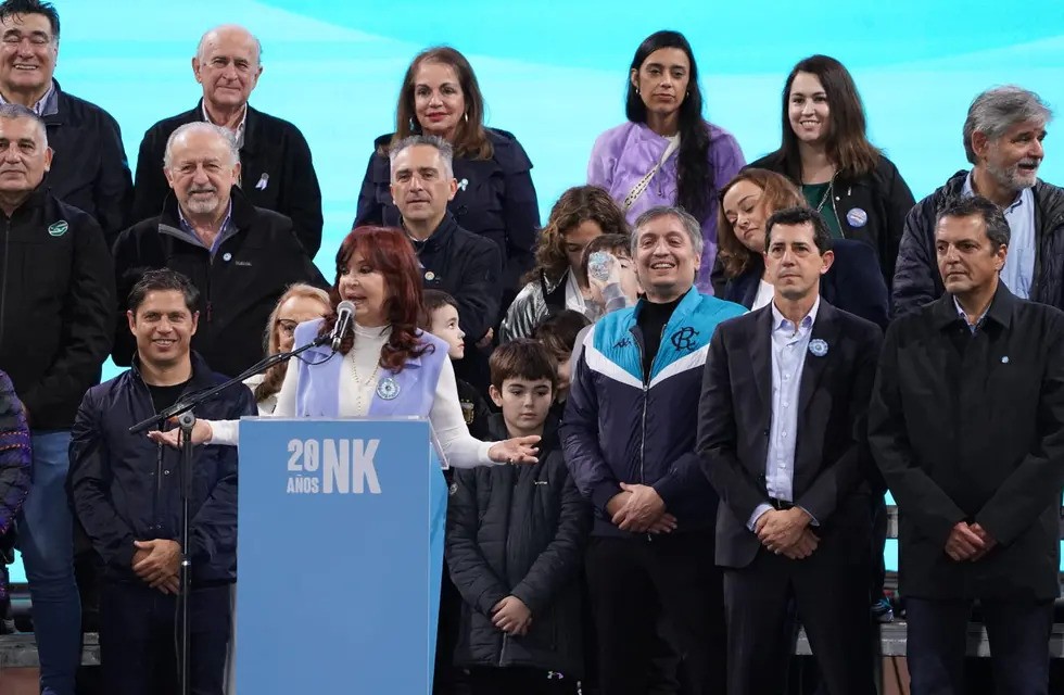 La centralidad de Cristina Kirchner también se reflejó arriba del enorme escenario techado. Allí se mezclaron intendentes bonaerenses, dirigentes del Frente Renovador, del Movimiento Evita y de derechos humanos, sindicalistas. En algo inusual, a su lado estuvieron dos de sus tres nietos.