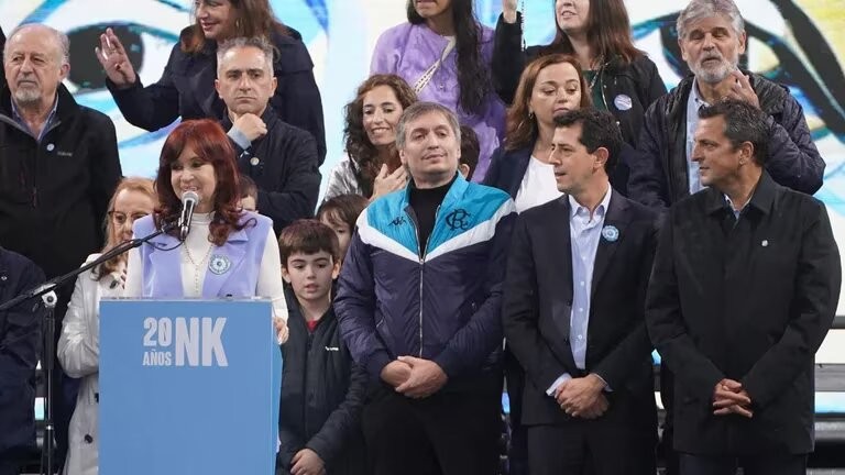Todo el discurso de Fernández de Kirchner estuvo acompañado por los clásicos cánticos de los militantes kirchneristas, sobre todo al recordar los ‘70 y la necesidad de la avanzar en una “renovación del pacto democrático”, un reclamo que instaló desde el intento de asesinato que sufrió en la puerta de su casa en Recoleta. “Escucho y dicen que hay que acabar con el peronismo. Por favor. Si con ganarle alcanza por qué llegar al exterminio”, insistió, lo que provocó la respuesta de los presentes a coro: ‪”A pesar de las bombas, de los fusilamientos, los compañeros muertos, los desaparecidos, no nos han vencido”.