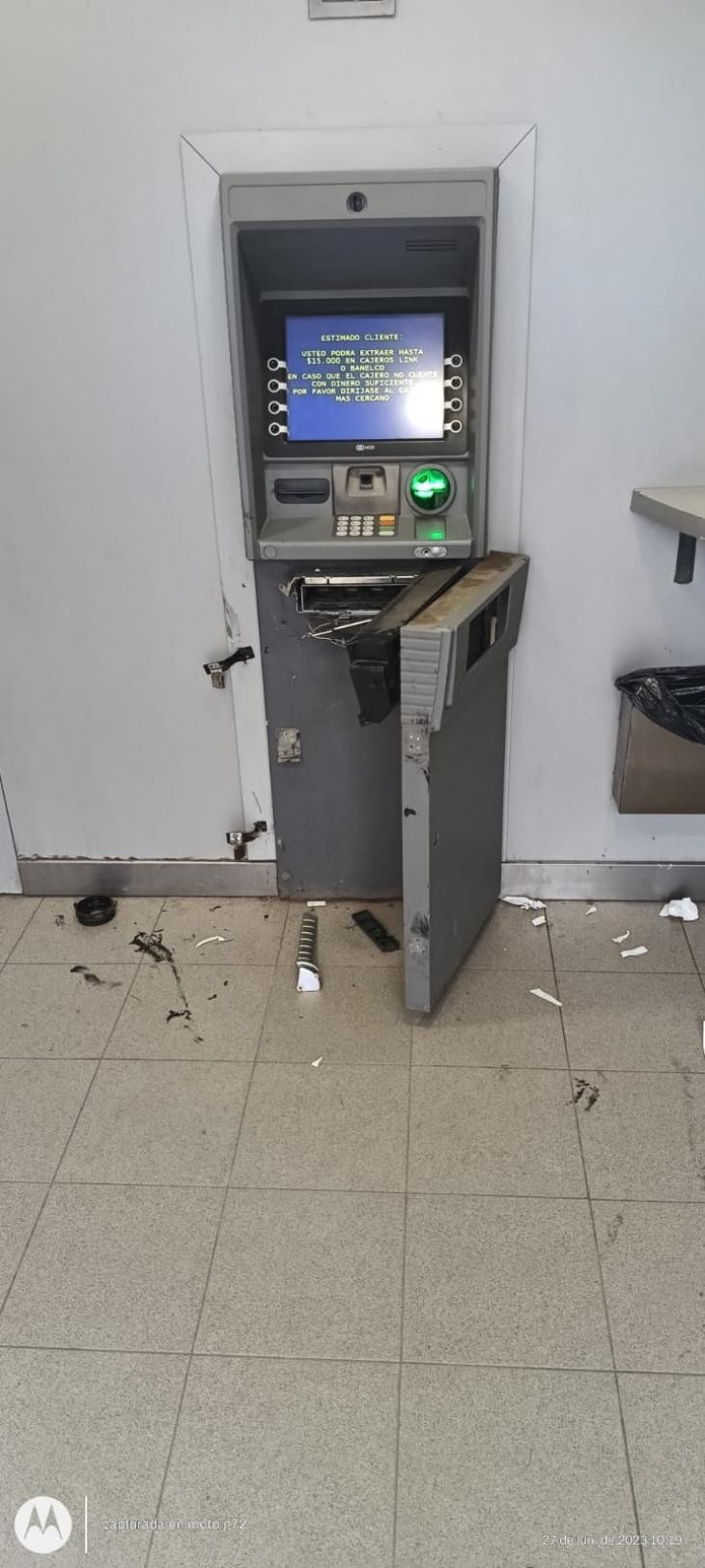 Allí, los agentes se encontraron con las las bisagras forzadas de la puerta del frente que estaba abierta, también dañaron la boca expendedora de dinero y el vidrio que protege la cámara de vigilancia.
