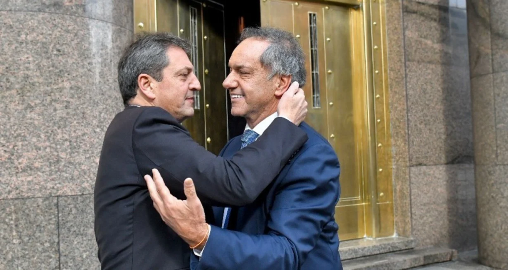 El precandidato presidencial de Unión por la Patria Sergio Massa y el embajador argentino en Brasil, Daniel Scioli, se reunieron este jueves en el Ministerio de Economía, tras el complicado cierre de listas del oficialismo.