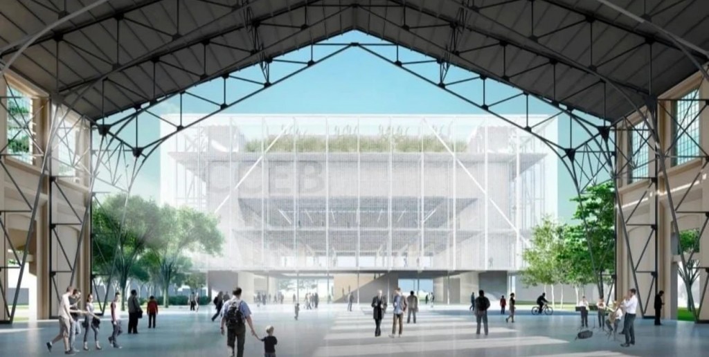 Entre la nave central y el nuevo edificio proyectado, habría una gran plaza pública para la realización de actividades culturales al aire libre.