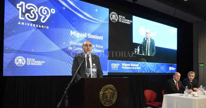 En un contexto marcado por la efervescencia política debido a la campaña electoral, el presidente de la Bolsa de Comercio de Rosario (BCR), Miguel Simioni, pronunció un discurso en la celebración del 139 aniversario de la entidad, destacando la importancia de la unión y los acuerdos para superar los desafíos que enfrenta la nación y su sector agroindustrial.