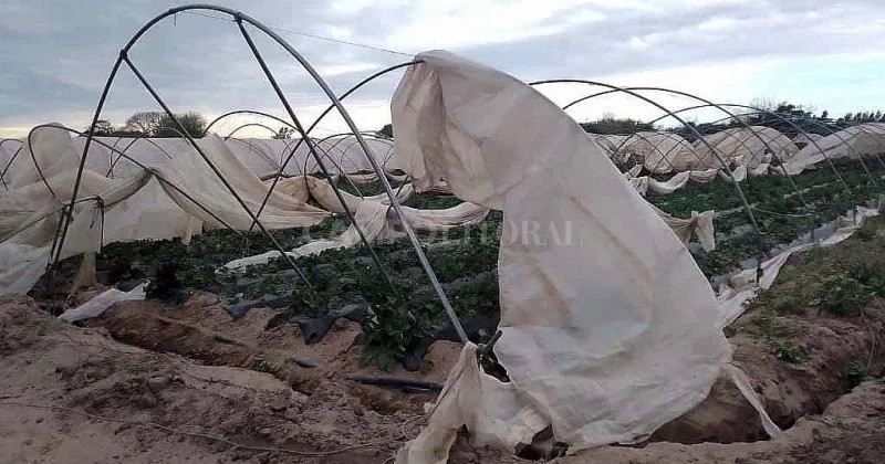 Coronda: vientos huracanados causaron daños en macrotúneles de la frutilla
