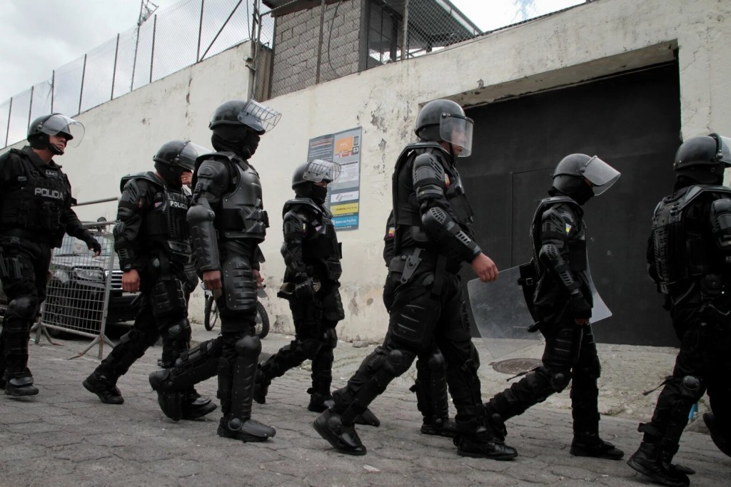 Un grupo de élite de la Policía Nacional llegan a vigilar un Centro de Rehabilitación Social, en Quito.