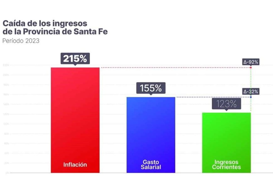 El ministro de Economía de la provincia, Pablo Olivares, enfatizó el "desplome" de los ingresos provinciales comparados con el 27,9 por ciento de inflación que midió el Ipec en Santa Fe, informó que por cada 10 empleados estatales que había en 2019 ahora hay 11 lo que suma un factor de presión más a la masa salarial del Estado provincial y dijo que los salarios se aumentaran "en función de la evolución de los recursos" que tenga el Estado provincial: "No estamos diciendo que vamos a desconocer la realidad, sí que tenemos la voluntad de ir atendiéndola en función de las posibilidades, que tiene que ver con la evolución de los recursos y con las posibilidades de eficiencia que se vayan logrando", enfatizó.