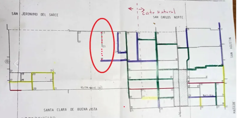 Identificado con el número 23, el camino había quedado fuera de servicio hace mucho tiempo, motivo por el cual los productores de la zona habían avanzado sobre la traza. "Como no se usaba le pusieron un alambrado al medio", relató Bertinat. Pero ante la necesidad de mejorar la logística, el municipio estudió abrirlo. "Los productores entendieron la problemática y accedieron a que se haga la obra".