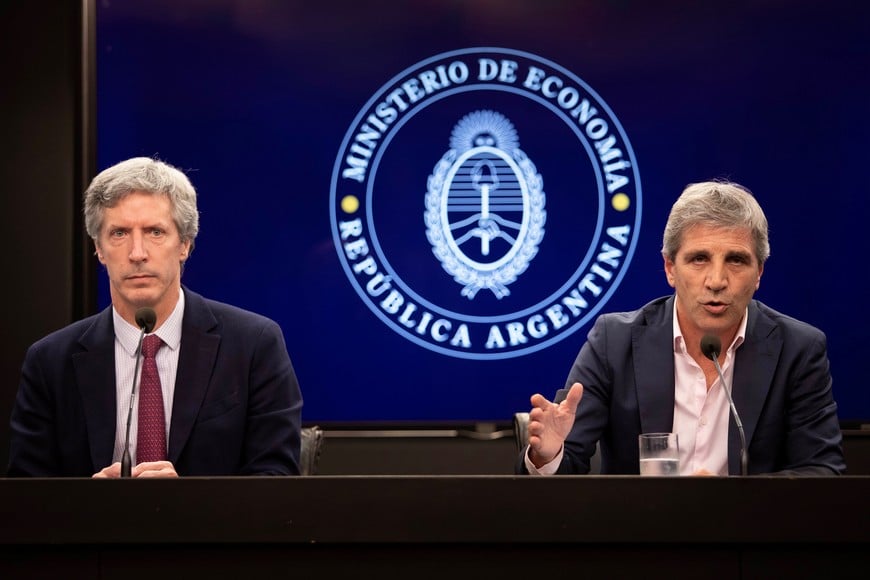 Santiago Bausili, presidente del Banco Central de la República Argentina (BCRA) junto al ministro de Economía, Luis Caputo.