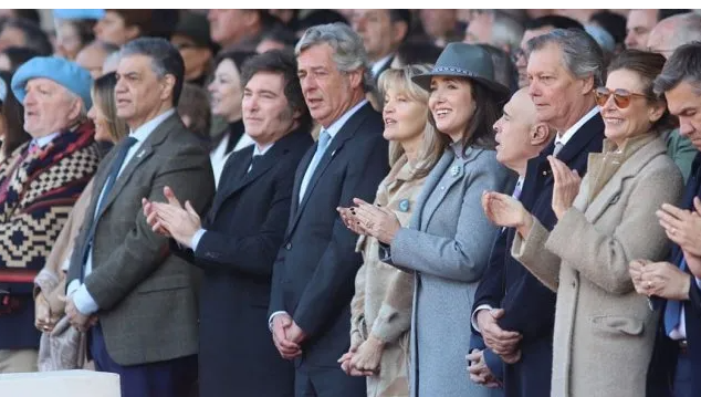 Mientras se escuchaban los elogios de los asistentes a Villarruel, entre los cuales primaban la ponderación de su look por parte de las mujeres apostadas a los costados de la pista, en el palco principal la película era otra. La funcionaria concurrió sola (desde su entorno aclararon que no se cursó invitación a todos los senadores salvo por el presidente provisional, Bartolomé Abdala) y se sentó a la izquierda de Pino y su esposa, quienes mediaron entre ella y el Presidente. Según pudo saber Ámbito, no hubo diálogo entre la titular del Senado y Javier Milei más allá del saludo.