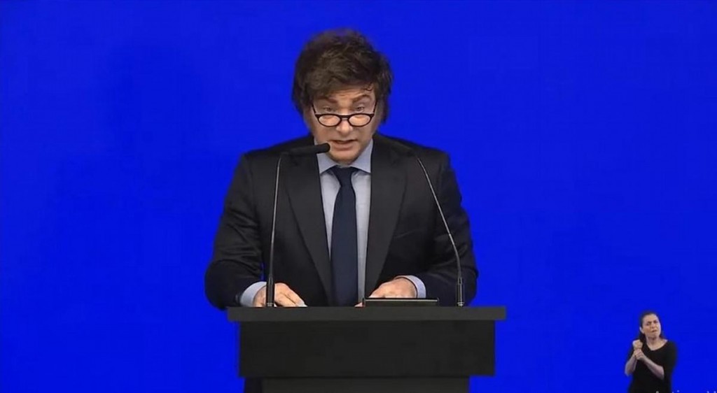 Durante su breve exposición, que duró poco menos de 15 minutos, Milei se mostró esperanzado de cara al futuro y prometió la recuperación de la economía: “Sabemos que ha sido difícil, ha sido duro, pero todo lo que queda por delante es hacia arriba, todo bueno. El país está entrando en su mejor momento de los últimos 100 años”.