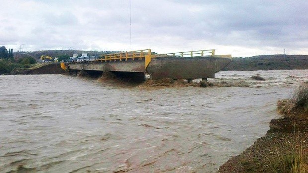 Mantiene persistentes lluvias desde el pasado sábado, que provocaron hoy la crecida de rÃos, generando el colapso de puentes, rutas y pasarelas anegadas y varias poblaciones aisladas. Una de las zonas más dañadas está en la ruta nacional 33, que pasa sobre el rÃo Santa Cruz, donde el agua se llevó cerca de 30 metros del terraplén.