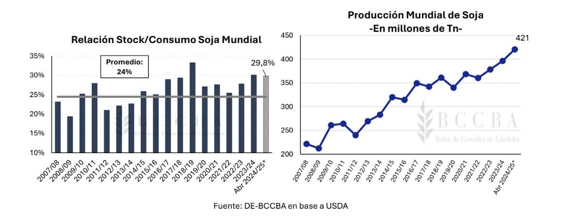 En el mercado de Chicago, la cotización promedio de abril de la soja se ubica en U$S 372, que según la Bolsa cordobesa cayó en U$S 56 con respecto al mismo período del año pasado.