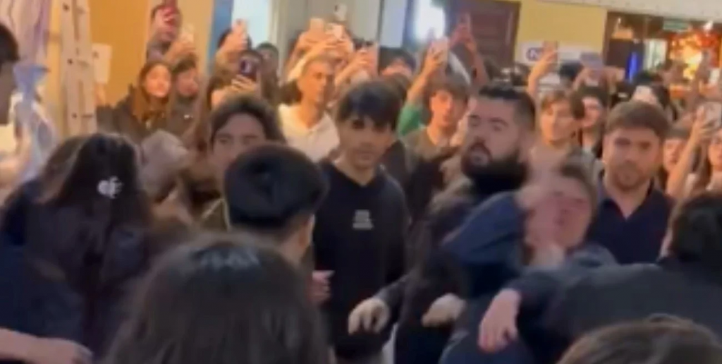 Las imágenes del altercado viralizaron rápidamente. Se observa a estudiantes abrazados en empujones, otros dando golpes, banderas agitándose como estandartes de conflicto..