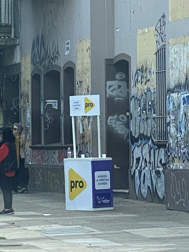 Los intendentes del macrismo se plegaron al volantazo de campaña en la provincia de Buenos Aires y desempolvaron el mobiliario amarillo del PRO para intentar despegarse de La Libertad Avanza. Volvieron a poner en primer plano el logo de su partido en los stands en vía pública y dejaron apenas un panel lateral para LLA violeta apelando a su propio electorado para intentar revertir la elección de cara al próximo domingo.