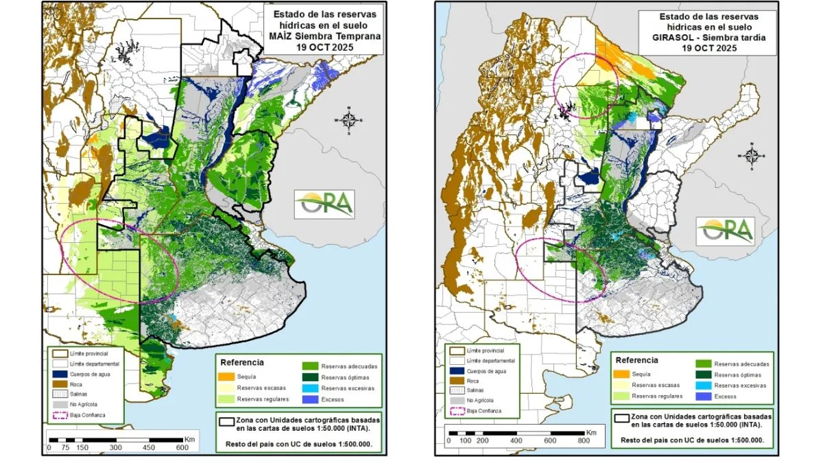 Mapa de reservas hídricas para el cultivo de maíz y del girasol.