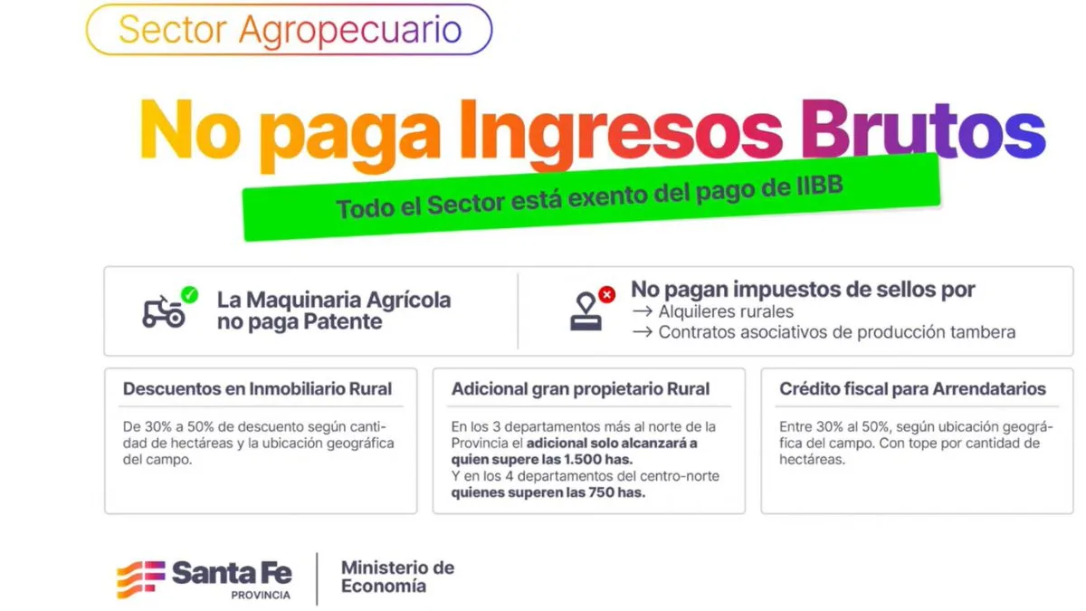 El proyecto oficial introduce descuentos diferenciados por región, beneficios para arrendatarios y cambios en el adicional para grandes propietarios. También incorpora nuevas exenciones y ajustes impositivos que, según el gobierno, buscan mejorar la competitividad del sector agropecuario santafesino.
