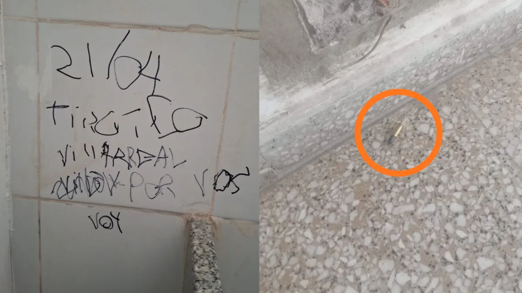 Por otro lado, el periodista Juanchi Molina informó la situación ocurrida en la escuela Almirante Brown, donde apareció una pintada en el baño y un alumno encontró una bala calibre 22 en el piso, que le entregó a una autoridad del establecimiento.