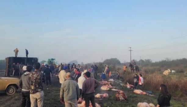 Cuando la noticia comenzó a correr, decenas de vecinos de la zona acudieron al lugar y carnearon a algunos de los animales, llevándose la carne a sus hogares.