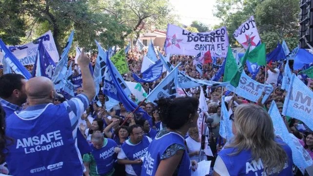 Este miércoles comienzan los paros de diferentes gremios que piden el adelantamiento de los aumentos previstos para agosto y septiembre y la reapertura de paritarias. El inicio de las protestas se dará con la novedad de que los docentes públicos nucleados en Amsafé y los privados de Sadop iniciarán la medida de fuerza de 48 horas marchando hacia Casa de Gobierno. Los primeros concentrarán, a las 10, en Plaza del Soldado para luego marchar. Mientras que los maestros privados, a la misma hora, lo harán en el monumento al Docente, frente al Ministerio de Educación, para luego coincidir frente a la Casa Gris.