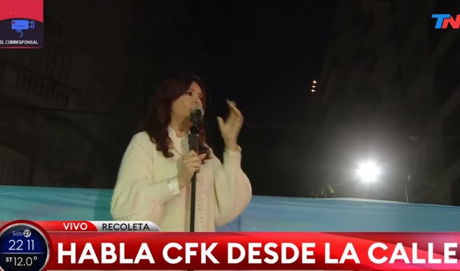 La vicepresidenta Cristina Fernández de Kirchner le reclamo a los dirigentes de la oposición que “no compitan para ver quién le pega más al peronismo”, y les pidió a sus seguidores que "vayan a descansar porque ha sido un largo día”, al hablar esta noche en Recoleta tras la represión que llevó a cabo la Policía de la Ciudad de Buenos Aires de Recoleta contra manifestantes que se manifestaban en el lugar.
