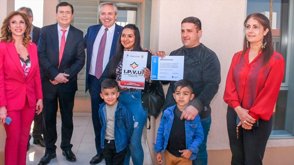 El presidente Alberto Fernández y el gobernador Gerardo Zamora realizaron este miércoles la entrega formal de 807 viviendas: 490 en el barrio Los Flores y 87 en Villa del Carmen de la ciudad Capital; 160 en el Ampliación Mama Antula de La Banda; 40 en el B° Néstor Kirchner de la ciudad de Pinto y 30 en el B° Portal del Norte de Villa Ojo de Agua.