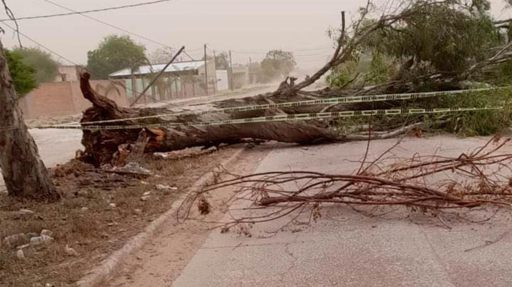Quimilí: el fuerte viento provocó la caída de árboles y postes