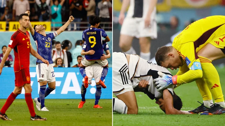 Por el Grupo E, España se clasificó segundo a pesar de perder 2-1 con Japón, que terminó primero en la zona. Los dirigidos por Hansi Fkick le ganaron 4-2 a Costa Rica y quedaron con 4 puntos, misma cantidad que los ibéricos, pero con peor diferencia de gol. Los teutones también cayeron (2-1) con los nipones en la primera jornada.