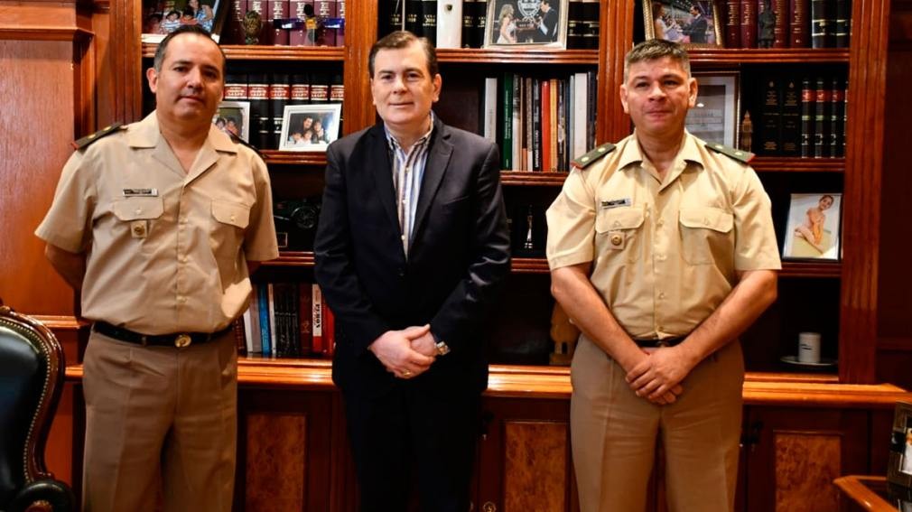 El mandatario recibió al jefe de la Agrupación XVII, comandante principal Duilio Oscar Poblete, y al jefe del Destacamento Móvil 5, comandante principal Raúl Alberto Garzón.