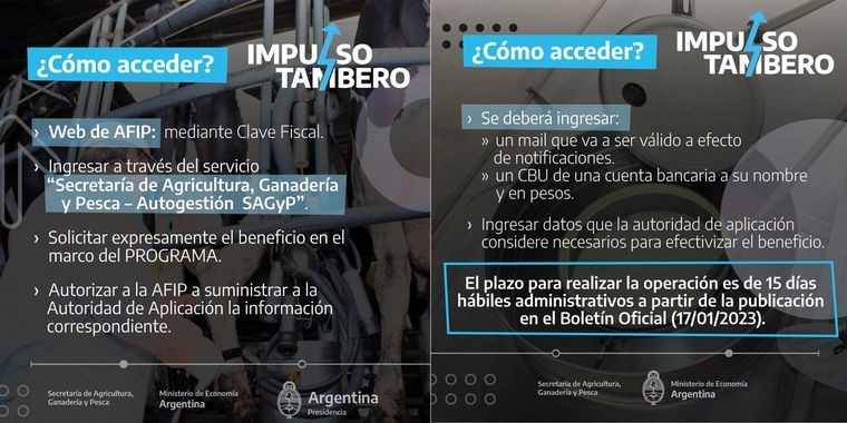 Los productores interesados en recibir el beneficio tendrán un plazo de 15 días hábiles, contando desde este martes pasado, para realizar el trámite correspondiente en la página web de la AFIP, ingresando con su clave fiscal por CUIT y solicitando el programa.