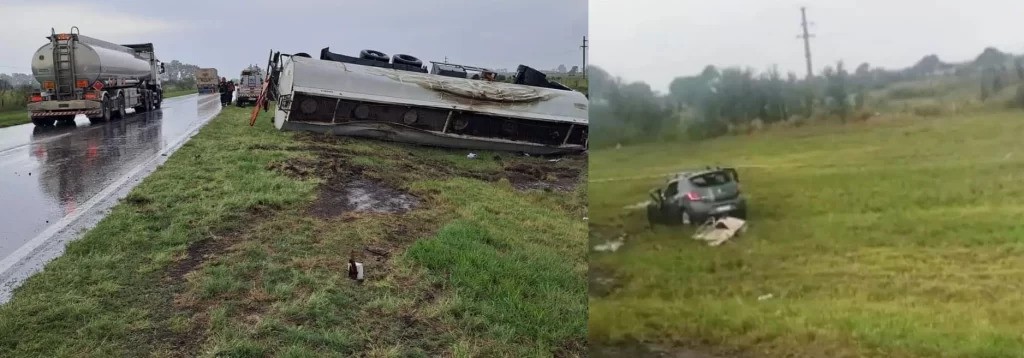 Involucrado estuvo un camión cisterna que transportaba fertilizante liquido, en el cual viajaban dos ocupantes, uno fue traslado al nosocomio de la localidad de Arrufo con heridas leves, mientras el conductor (fallecido) se encuentra atrapado en el vehículo.