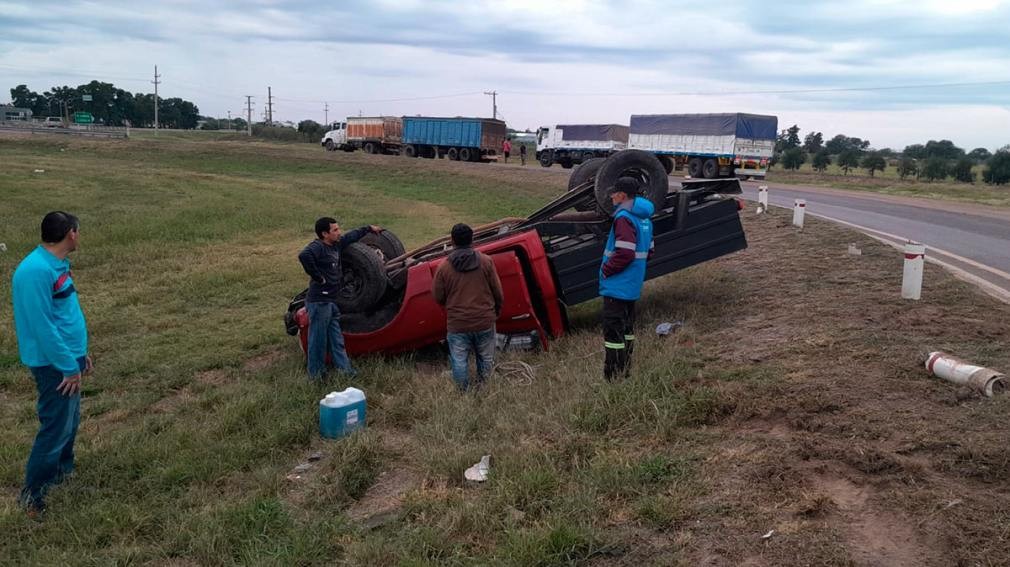 En la mañana de este viernes, dos ocupantes de una camioneta salvaron su vida de milagro, luego de que el conductor perdiera el control de la misma y terminaran volcando hacia un lateral de la rotonda de Ruta 98.