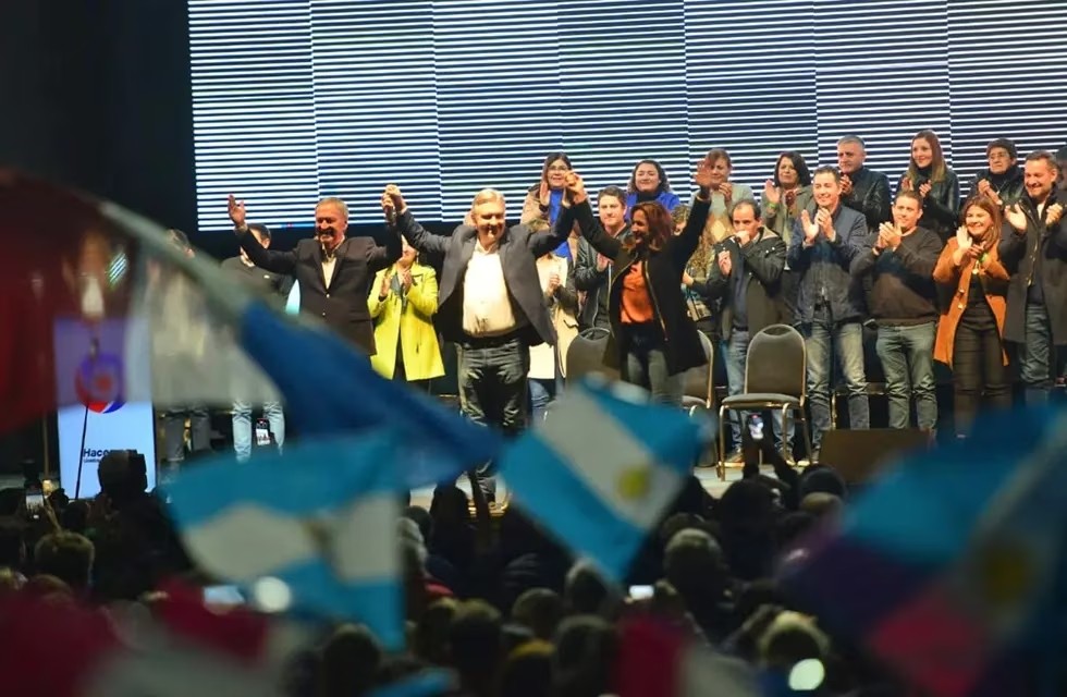 En el escenario, además de Schiaretti y los candidatos, están presentes Manuel Calvo, vicegobernador y jefe de campaña, la senadora Alejandra Vigo y candidatos a legisladores departamentales y de la lista “sábana”.