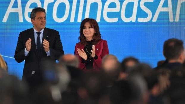 Cristina Fernández de Kirchner y el aspirante a la Casa Rosada por Unión por la Patria Sergio Massa volvieron hoy a compartir un escenario para la inauguración de un simulador de vuelo de Aerolíneas Argentinas, donde ambos defendieron el rol del Estado y la Vicepresidenta reclamó al FMI que se haga cargo de sus propios desmanejos.