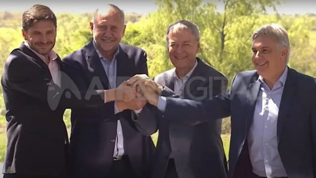 Los gobernadores de Santa Fe y Córdoba, Omar Perotti y Juan Schiaretti compartieron la firma del acuerdo del acueducto biprovincial con sus futuros sucesores, Maximiliano Pullaro y Martín Llaryona. La actividad se llevó a cabo a la vera del río en la ciudad de Coronda.