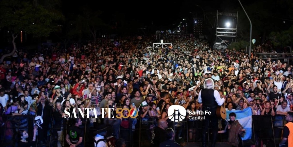 Finalmente, un día después del aniversario redondo (por razones climáticas), la ciudad de Santa Fe celebró sus 450 años de existencia. Lo hizo en la Costanera, a la altura del faro, con el infaltable Juan Manuel “Negro” Velázquez en la conducción (en esta ocasión junto a Luciana Trinchieri, luego de hacer dupla con Gisela Vallone en otras veladas).