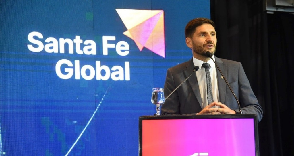 El gobernador Maximiliano Pullaro participó este jueves, en la Nueva Terminal Fluvial de Rosario, del relanzamiento del programa de promoción de inversiones y exportaciones Santa Fe Global, y expresó que el objetivo de la iniciativa es duplicar las exportaciones en la provincia.