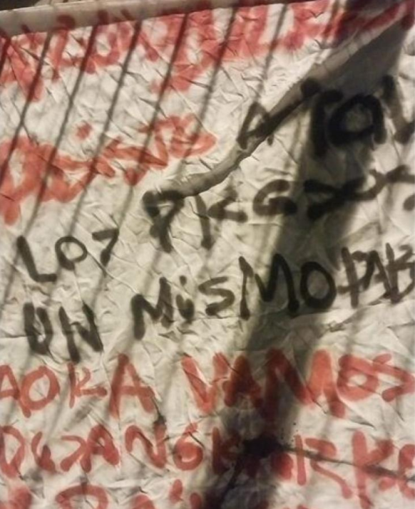 La policía, acudió al lugar y bajó la tela con el objetivo de comenzar una investigación para intentar detener a los violentos.