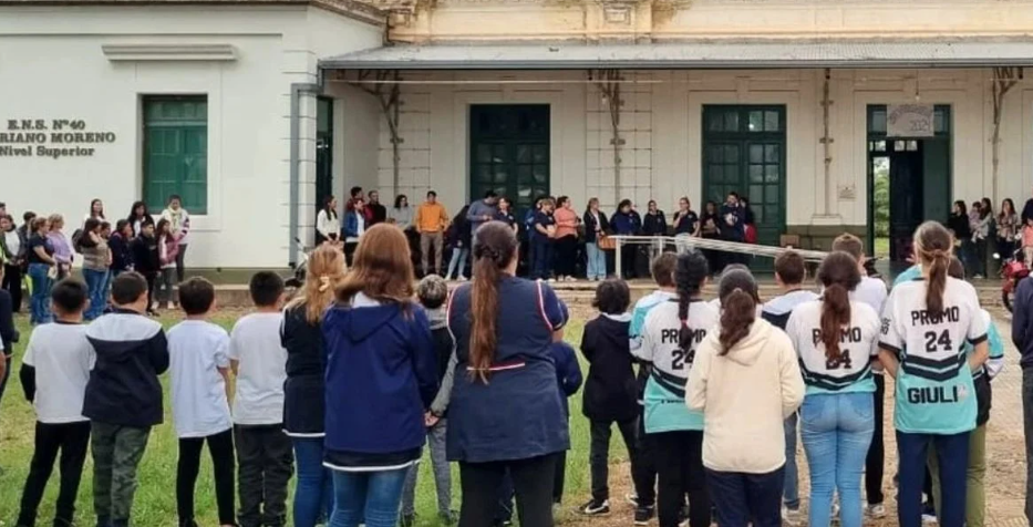 Por iniciativa del Centro de Estudiantes del Nivel Superior de la Escuela N° 40 “Mariano Moreno”, estudiantes, docentes, familias y vecinos se sumaron al “abrazo solidario por la educación pública”, en el edificio histórico de la institución.