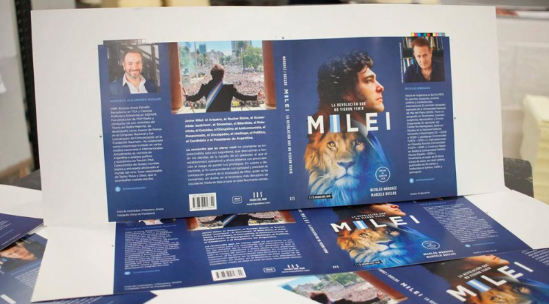 El libro en cuestión, de los autores Nicolás Márquez y Marcelo Duclos, es una biografía que retrata el fenómeno político que encarna Milei.