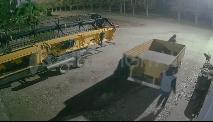 Los ladrones actuaron con toda tranquilidad, más allá de que la alarma se había disparado. La secuencia quedó registrada en las cámaras de seguridad del campo. Hasta donde toman los domos se puede ver cómo se llevaron entre tres - caminando - el acoplado.