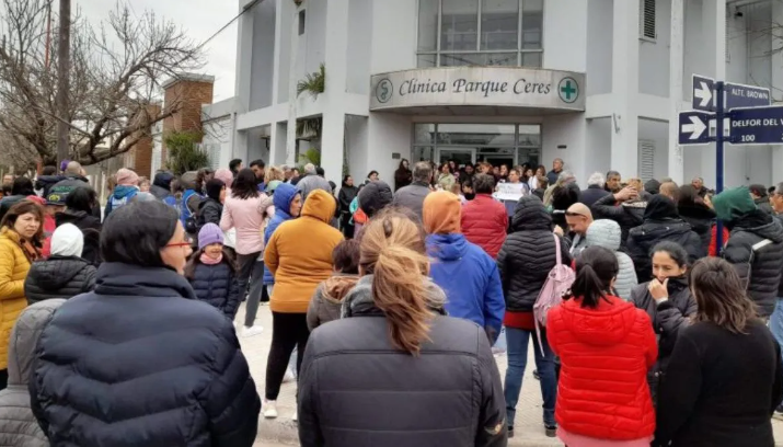 El hecho generó una conmoción en toda la comunidad de Ceres y este domingo se manifestaron frente a la sede de la clínica en busca de respuestas. "Ayer se hizo una pueblada ceresina frente a la clínica. Mucha gente se hizo presente en apoyo a los trabajadores y también para trasladar esta preocupación que tienen ellos como sociedad", indicó la dirigente gremial.